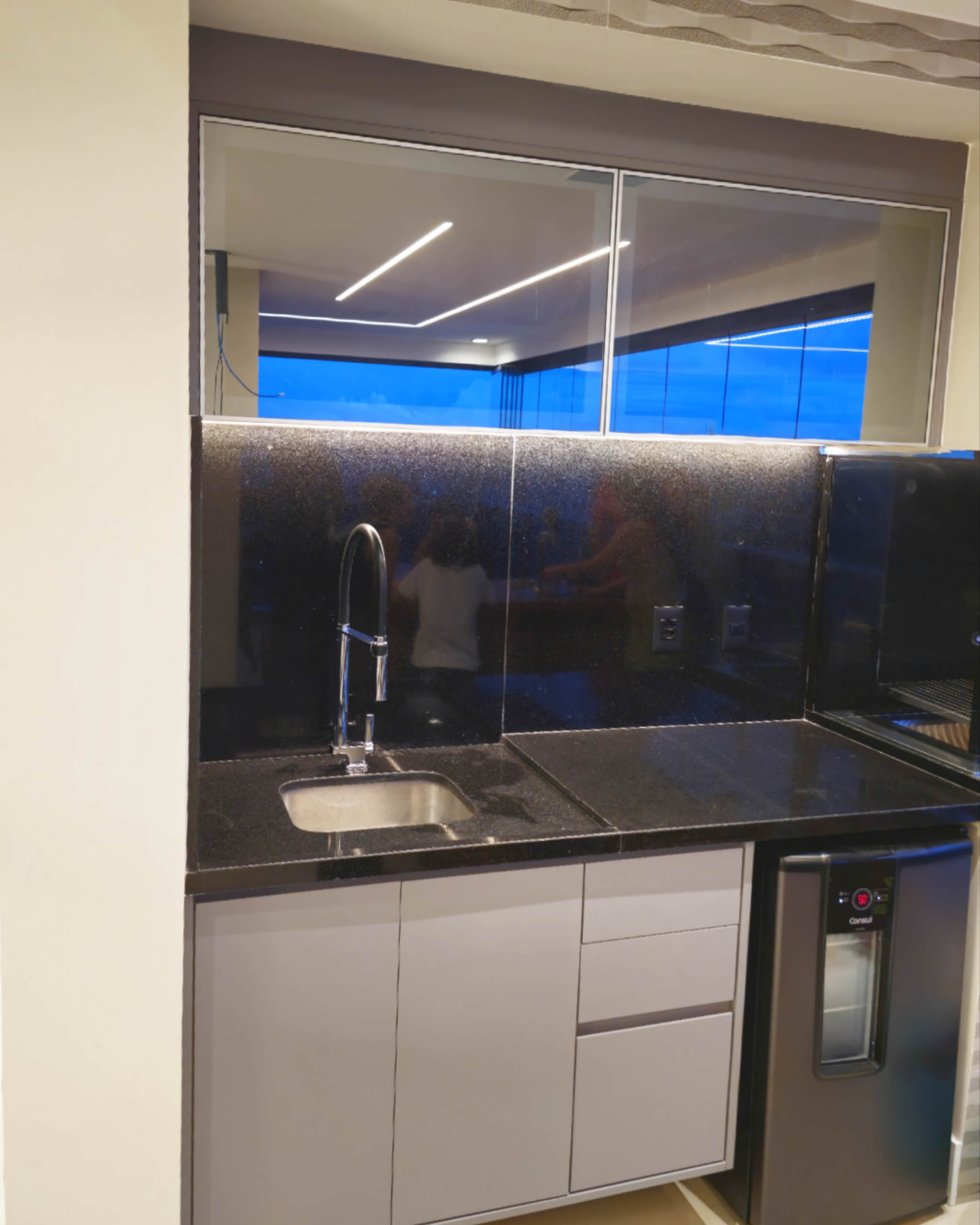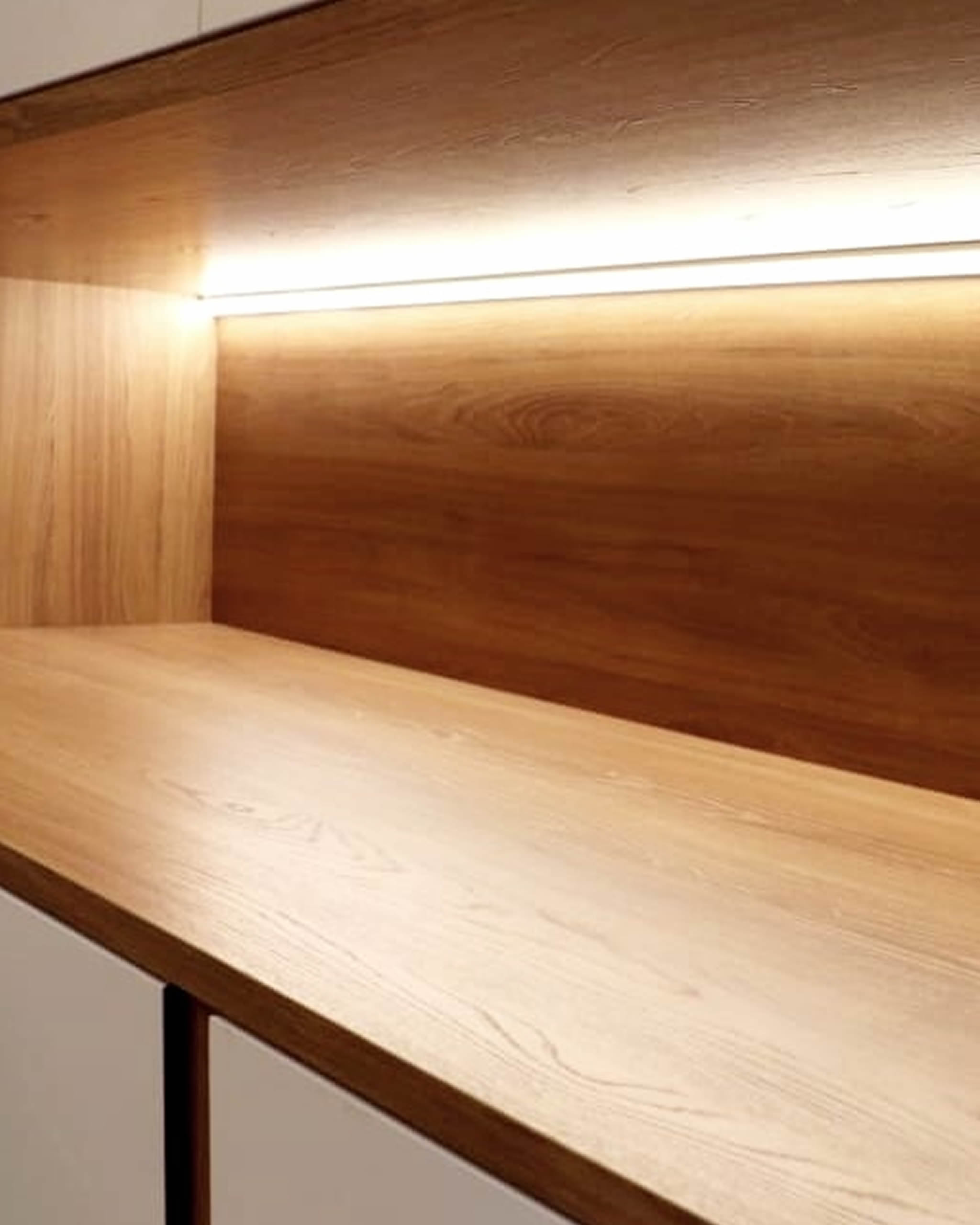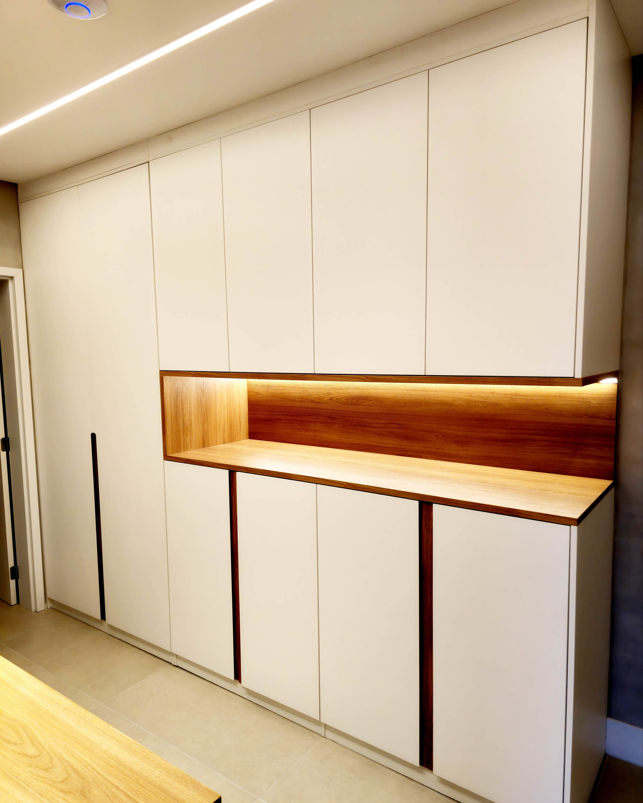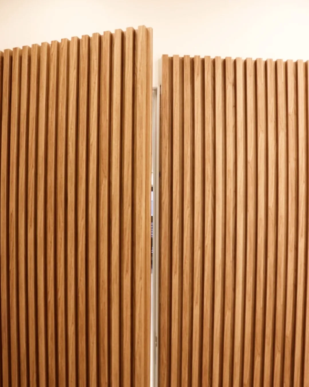A project that used a lot of glass doors, slatted panels, beaded panels, and leather pattern laminate panels.